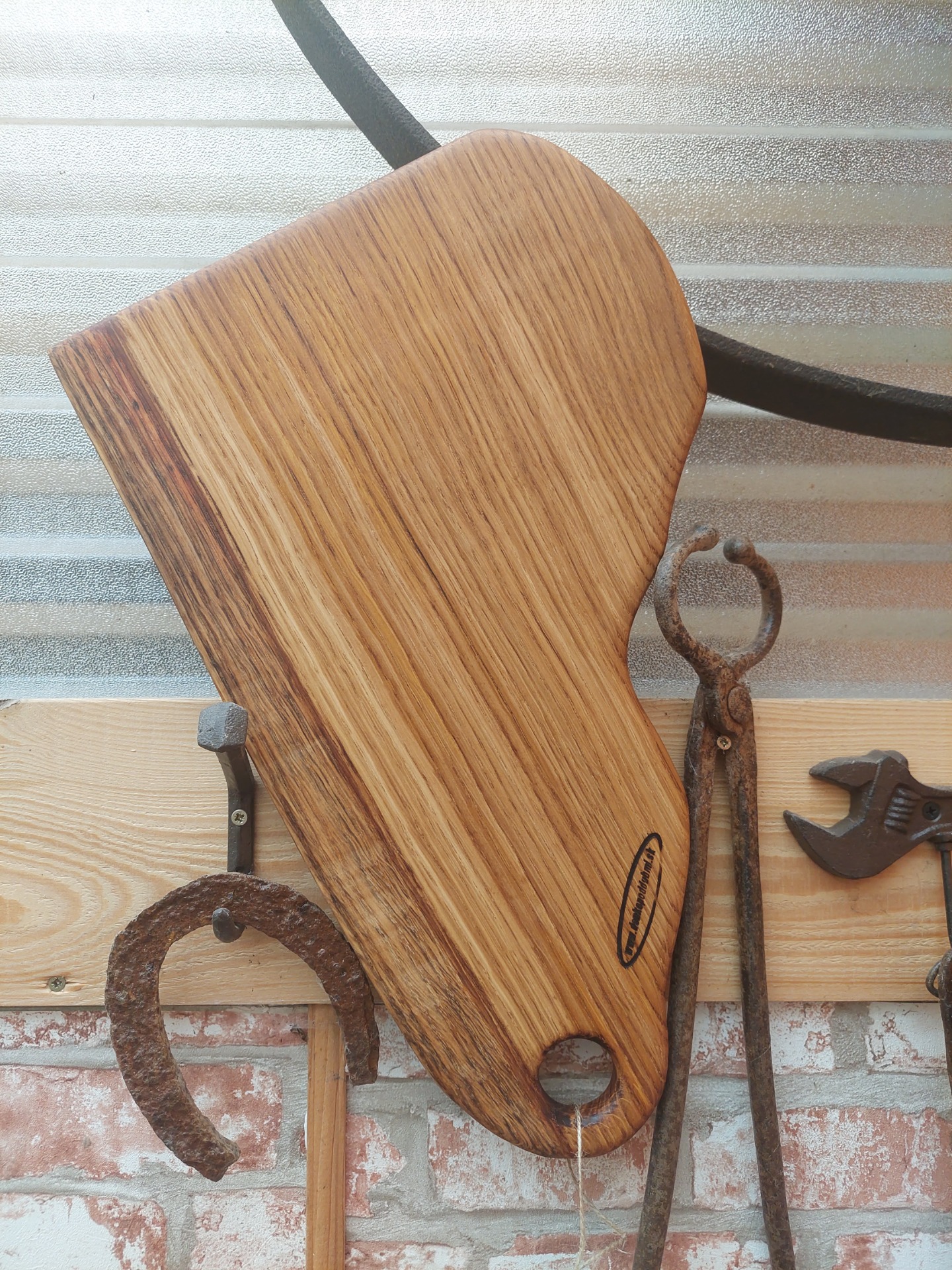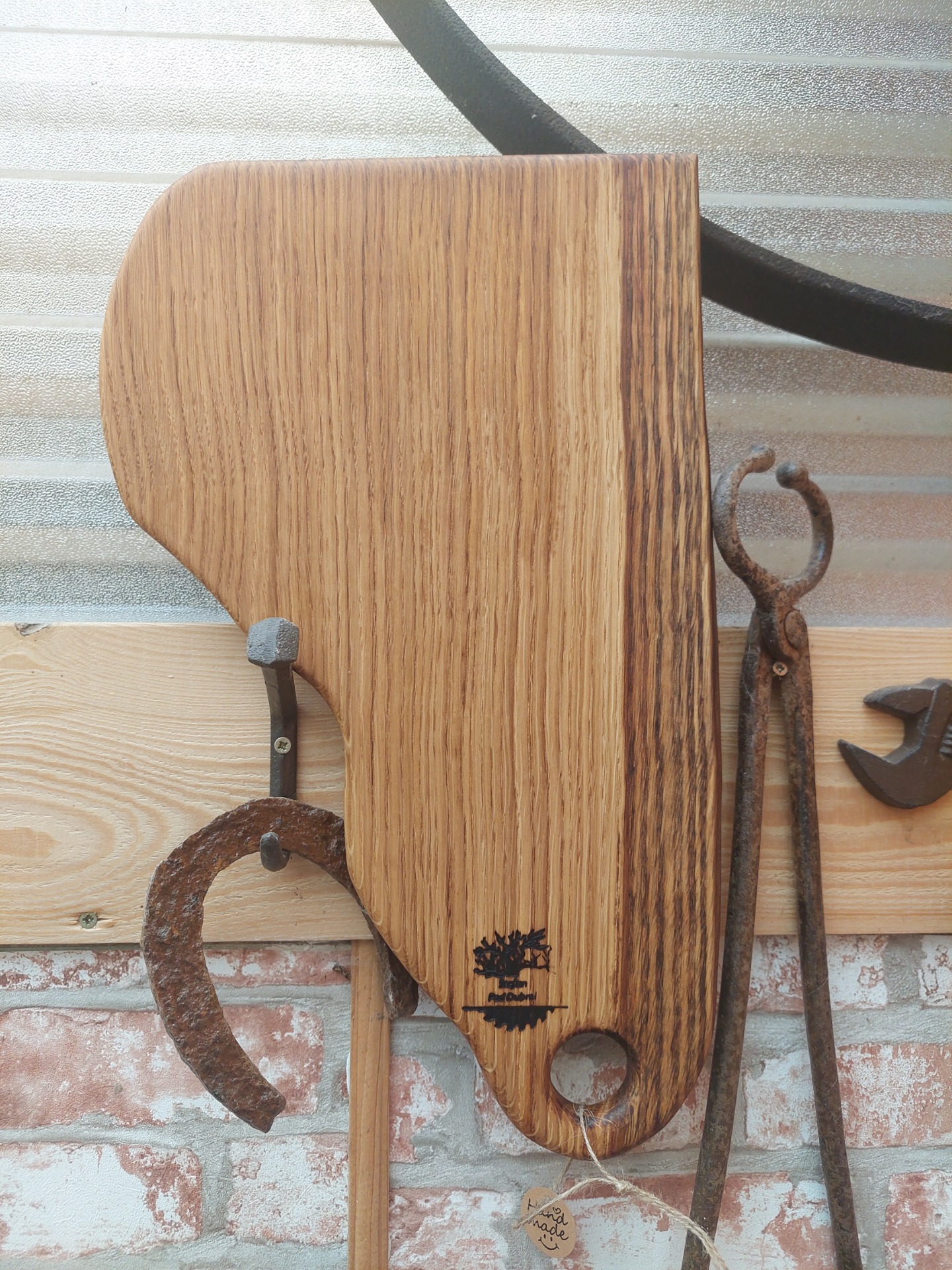 Denko, lopár vyrobené z dubového dreva . Strom mal viac ako 100 rokov , sadil ho manželkin dedko, bohužiaľ bol už chorý tak sme ho museli zrezať , hrozilo zrútenie na rodinný dom. Bolo mi ľúto všetko spáliť v kotly, tak som vyrobil dosky na krájanie, aspoň takto bude ešte niekomu slúžiť. Kazy a trhliny sú zaliate epoxidom. Drevo ošetrené olejom s voskom značky Osmo - bezpečný pri styku s potravinami.